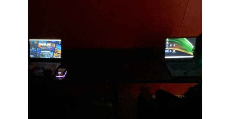 I dette rum kan man skrive sig op til en tid til en af computerne. Her er der rigtig gamer setup med 2 bærbare, headset og computerstole. Der er både plads til at fordybe sig i et spil 2 mod 2 samtidig med at man kan have venner stående som heppekor i baggrunden. Børnene i klubben har 30 min i alt på elektronik pr. dag. Det betyder at børnene kan vælge enten at spille på Playstation 4, Playstation 5, computer eller VR briller. Derefter skal de lave noget andet end at bruge elektronik.
