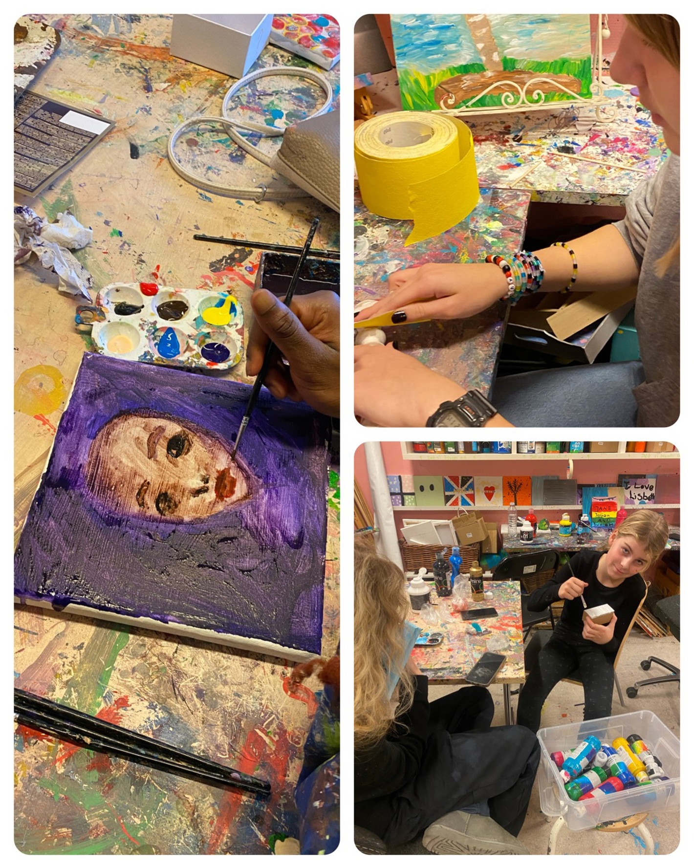 Værkstedet består af 2 rum som er delt op. Det ene bruges primært til de ting der sviner, og det andet er til resten. Vi har mange materialer der appellerer til børnene, og som giver dem mulighed for at dyrke og udvikle deres kreativitet. Vi maler, tegner, klipper, syr, laver perlesmykker, maler på glas og porcelæn og meget andet. Værkstedet er som udgangspunkt et rum hvor børnene ikke er alene, med mindre andet er aftalt.